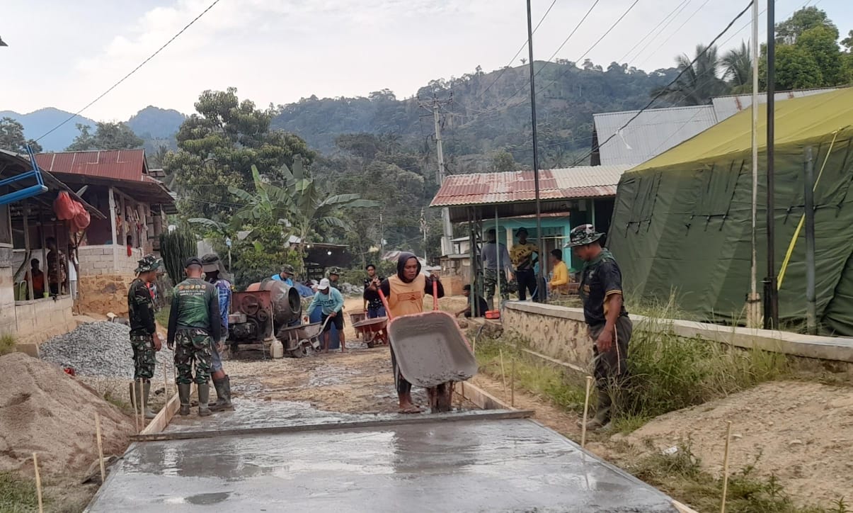 Sekarang? Problem itu mulai menjadi semangat baru setelah lihat para Bapak-bapak TNI tengah melakukan pengecoran rabat beton. Jelas, ekonomi pun mulai hidup lagi.