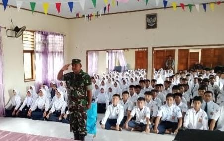Aula sekolah mendadak dipenuhi semangat nasionalisme. Bukan upacara, bukan lomba 17-an, tapi ada yang lebih seru yakni, penyuluhan wawasan kebangsaan dan bela negara bareng prajurit TNI dari Kodim 1315/Kabupaten Gorontalo lewat program TMMD ke-126.