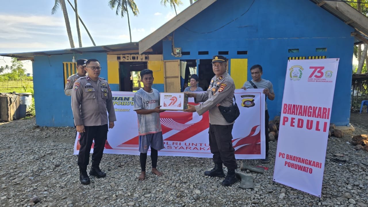 Menyambut Hari Ulang Tahun (HUT) Bhayangkara ke-79, jajaran Polsek Marisa bareng Bhayangkari Ranting Marisa kompak turun langsung ke Desa Buntulia Selatan, Kecamatan Duhiadaa, Jumat (20/6/2025) sore, buat gelar bakti sosial.