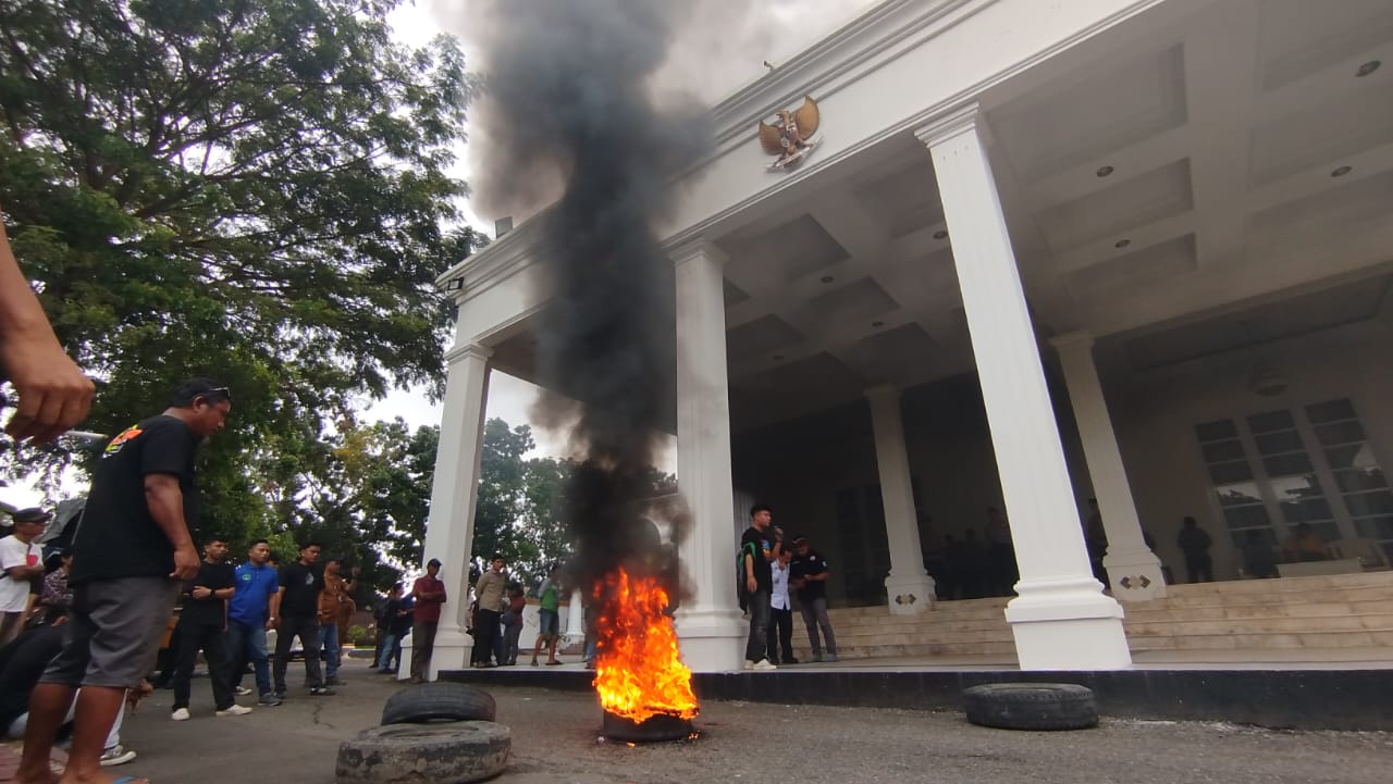 Awalnya damai, tapi mendadak chaos gara-gara aksi bakar ban di teras rumah jabatan (Rujab) Gubernur Gorontalo, Senin (7/7/2025).